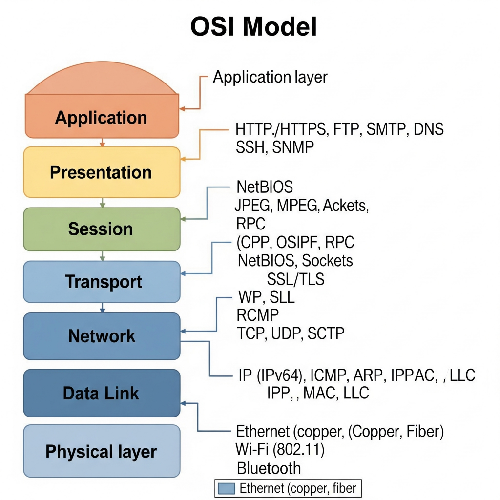 👉 Application → Presentation → Session → Transport → Network → Data Link → Physical